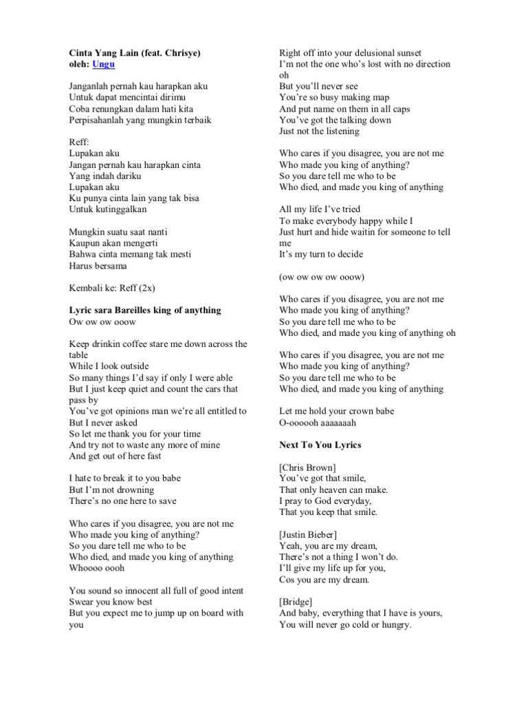 Tentang apa yang membuatku mudah. Tak pernah aku. Berikut cuplikan syair nyanyian teks dari lagunya.